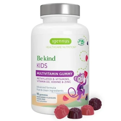 ADVANCED KIDS MULTI WITH 11 NUTRIENTS – delivering a wide range of essential vitamins and minerals including A, C, D and E, iodine, methylated B-vitamins and zinc to nourish growing children HIGH ABSORPTION NUTRIENTS – higher potency than standard gummies, this formula delivers a meaningful top-up of vitamins and minerals in bioavailable forms, including MTHFR-friendly methylated folate (the active form of folic acid) SUGAR-FREE BERRY GUMMIES - the tasty mixed berry flavour includes real fruit powder and gummies are tooth-friendly (no sugar, glucose syrup, artificial colours, sweeteners, flavours or preservatives) PURE, CLEAN & VEGAN - we only use hypoallergenic and lab verified ingredients with no unnecessary additives (such as silicon dioxide), tested for heavy metals, GMP manufactured in Canada, BPA-free packaging GROWTH, BRAIN & IMMUNE HEALTH - together, these nutrients support focus and learning, growing bodies and bones and provide immune support