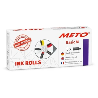 Original Meto ink rollers for the professional hand labelers of Meto are developed for pricing, date coding and marking of article-, batch-, machine-, employee numbering etc. High quality ink rollers - Made in Germany Content: 5 pieces in the blister pack Printing color: black Suitable for the simple and clean ink roller replacement of the hand labeler Meto Arrow M (2-lines, 16-digits for 22 x 16 mm labels)