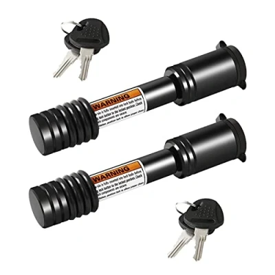 [Compatible with Most Hitches] Our barbell-style 5/8 inch diameter heavy duty trailer hitch receive lock pin fits 2 inch receiver tubes, and it is suitable for class III, IV, V hitches. It can be used for tray tow rope of trailer, truck, car and boat. [Durable and Watertight] The all-weather cover cap of our trailer hitch lock keeps the keyhole away from water and dust. The dustproof and waterproof lock pin is more durable. [Stronger Copper Keys] The keys made of copper and covered non-slip protective, fit our upgraded zinc alloy lock core, which is more solid and stronger than ordinary keys. [Prevent Rattling Noise] Our heavy-duty trailer hitch lock pin is equipped with 4 high-quality rubber O-rings, which can effectively prevent rattling noise caused by shaking during towing. [Higher Security and Theft Deterrence] The trailer hitch lock pin can ensure locking safe and protect your trailer every time, and the lock provides higher security and theft deterrence while towing.
