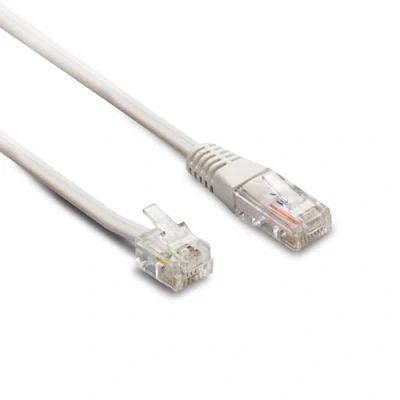 RELIABLE CONNECTIVITY - 5m male/male cable ideal for connecting phones, faxes or modems to RJ45 sockets with consistent quality. Optimal signal transfer: 4 gold-plated contacts ensure stable transmission without interference in every use. FLEXIBILITY AND STRENGTH - Flexible and durable design, perfect for installations in tight or hard-to-reach spaces. Guaranteed compatibility: Compatible with NF C15-100, ensuring adaptability and compliance with standard installations. Versatile Length: At 5 meters long, this cable allows for easy connections over long distance without signal loss.