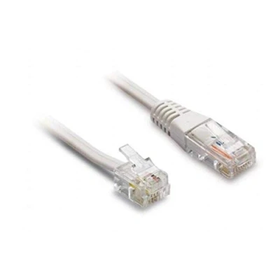 Cable with RJ11 male connector (ADSL, phone) to RJ45 male connector (network, wall socket) This cable allows you to connect your wired phone or ADSL box and modem to a RJ45 wall socket. The contacts of the 4 connectors are gold plated to ensure a perfect connection between the RJ11/RJ45 and the female sockets. This cable is compatible with the NF C15-100 standard which regulates low voltage electrical installations in residential premises in France Brand: Metronic. Colour: white. Length: 3 m