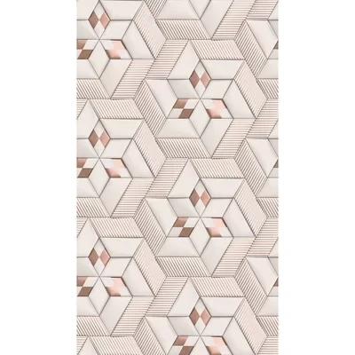WallpaperDirectA bold and contemporary geometric pattern with a 3-dimensional effect. Four-sided shapes create a star pattern, with metallic rose gold highlights. Supplied as 3 lengths of 2.8m on a 53cm wide roll. Mural is a side-to-side repeating image.