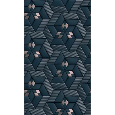 A bold and contemporary geometric pattern with a 3-dimensional effect. Four-sided shapes create a star pattern, with metallic rose gold highlights. Supplied as 3 lengths of 2.8m on a 53cm wide roll. Mural is a side-to-side repeating image.