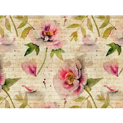 WallpaperDirectHandwriting on the wall; a love letter written in a neat and leisurely script, garnished with Peonies, this person definitely had a special place in the author's heart. But we won't read other people's letters.A 7x panel mural, WxH dimensions 371x280cm, free pattern match