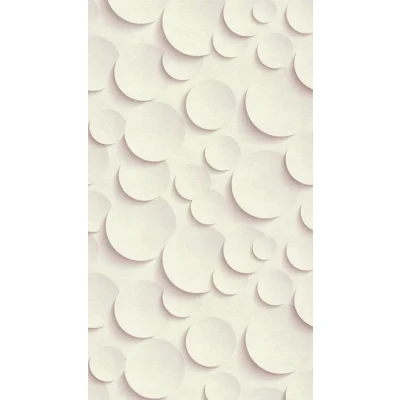 A three-dimensional effect that gives the illusion of giant white chocolate buttons. A 3x panel mural, WxH dimensions 159x280cm, a free pattern match.