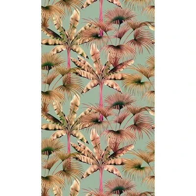 Tall tropical palm trees bring a slice of paradise to any interior scheme. Shown here in the Blue Pink colourway. Supplied as 3 lengths of 2.8m on a 53cm wide roll. Mural is a side-to-side repeating image. 39183-2