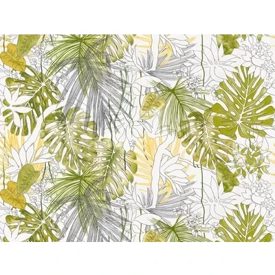 WallpaperDirectCommonly known as the 'Swiss Cheese' plant because of its holey leaves, the Monstera Deliciosa is represented here as a mixture of carefully rendered leaves and a frenzy of scrawled lines, creating. a lively movement within the scene.A 7x panel mural, WxH dimensions 371x280cm, free pattern match