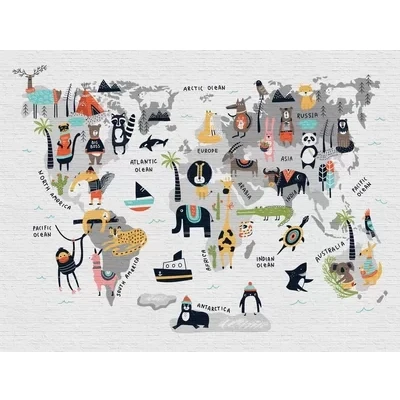 WallpaperDirectThe world before humans turned up was one big zoo party, without the cages. Everybody had a good time. A 7x panel mural, WxH dimensions 371x280cm, free pattern match.