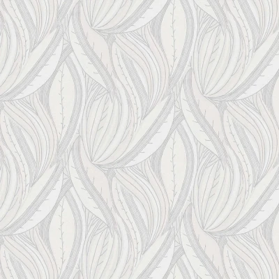 WallpaperDirectA lightly textured vinyl with a bold pattern of waves or leaves - inspired by the landscape and shores of Waikiki Beach. Shown here in the Silver Grey colourway.