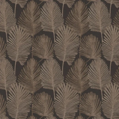 WallpaperDirectA lightly textured vinyl design with an all over fabric effect, overlaid with single palm leaves drawn in fine lines in alternate colours. Shown in the Charcoal colourway.