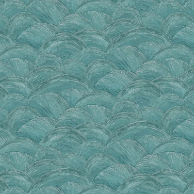 WallpaperDirectA contemporary textured design featuring painterly overlapping arches, giving the impression of a softly undulating sea. Subtle strokes of metallic ink bring dimension to the gentle curved pattern. Shown here in the Teal colourway. 39105-2