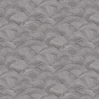 A contemporary textured design featuring painterly overlapping arches, giving the impression of a softly undulating sea. Subtle strokes of metallic ink bring dimension to the gentle curved pattern. Shown here in the Grey colourway. 39105-3