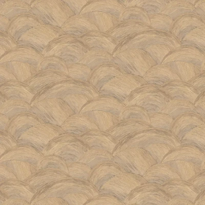 A contemporary textured design featuring painterly overlapping arches, giving the impression of a softly undulating sea. Subtle strokes of metallic ink bring dimension to the gentle curved pattern. Shown here in the Brown colourway. 39105-4