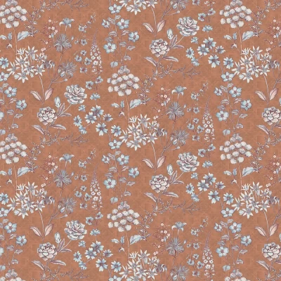 A delicate spray of wild flowers are displayed against a subtle geometric pattern. Shown here in the Orange colourway. 39117-3