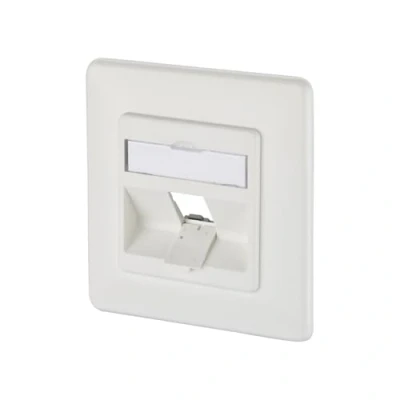 Keystone junction box, unequipped Flush-mounted connection unit for single modules, keystone design Plug-in direction of the module 45° tilted downwards Strain relief on the module With viewing window for enclosed labelling insert, Manufacturer: Metz Connect