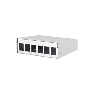 Keystone housing surface-mounted unequipped for single modules Sturdy sheet steel housing Housing top powder-coated in RAL9010 Easy to put on and remove the upper part of the case Potential compensation possible via flat connectors