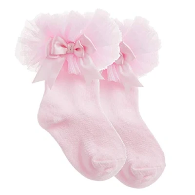 Metzuyan 2 Pack Baby Girls Tutu Frill Socks Cotton Rich Pink 0