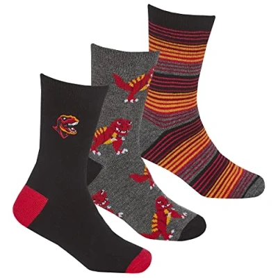 BOYS NOVELTY DINO SOCKS - Presenting boys novelty dinosaur printed and embroidery T-Rex, Triceratops socks design Bundle Buy Pack of 3 or 6. Whether they're for wearing at school or when playing out, expect these socks to last and provide comfort to your little boys feet all day long! MATERIAL COMPOSITION - Soft & Gentle material made from 73% Viscose From Bamboo, 24% Polyester and 3% Elastane. Benefit from material attributes such as being soft, durable, breathable and warm. Providing optimum comfort all day! COMFORTABLE & BREATHABLE - The soft Bamboo material allows a cosy experience. Skin-friendly design and wear-resistant properties. No need to worry about deformation or fading, no matter outside or inside. Do not sweat in summer because they are breathable. COMFORTABLE FIT - Available in size 12.5-3.5 - 4-6. Consisting of a soft-combed Bamboo fabric. Keeping your feet cool throughout spring/summer. Loose fit allows comfortable unrestricted fit that's soft against the skin, easy to care for and durable. EVERYDAY ESSENTIAL - In Summer, you'll look effortlessly stylish whilst keeping cool all day for an affordable price. Why not take advantage of the massive multibuy deal? With this, you will always have a fresh set for the following week while the other set are in the wash.