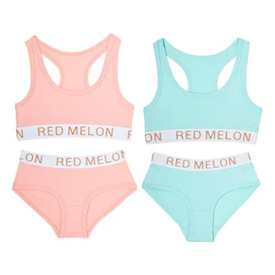 GIRLS UNDERWEAR SET- Perfect for helping girls feel secure and supported these starter crop top and knickers sets from Red Melon by Metzuyan are available a pack of 2 in sizes 7-13 years. SPARKLE BAND- This classic design set is stepped up a notch with the sassy touch of sparkle on the band of the crop top and knickers, they are perfect for helping your child feel her best. GREAT STARTER- The perfect starter set for girls, this set will help her feel supported and get her used to the feel of a bra before moving on. SPORTS- These sets are great for active girls, perfect for wearing at dance lessons, gymnastics, football and any other sporting activity. The cotton rich fabric is breathable keeping your child feeling fresh and comfy. BUY WITH CONFIDENCE - As an official reseller, only Metzuyan Ltd and can guarantee the item that is advertised, along with excellent customer service. So place your order, sit back and relax. We stand behind our brand products and will endeavour to solve