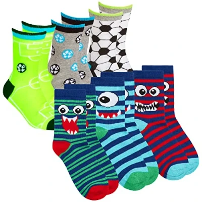 Metzuyan Kids Boys 6 Pairs Crew Socks Cotton Rich Novelty Cartoon Print Mid Calf Sock Football Faces 8.5