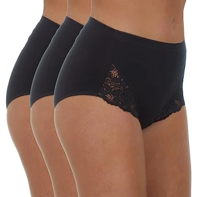 Metzuyan Ladies 6 Pairs Maxi Briefs Cotton Breathable Regular Underwear Lace Leg Black Size 18
