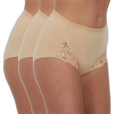 Metzuyan Ladies 6 Pairs Maxi Briefs Cotton Breathable Regular Underwear Lace Leg Nude Beige Size 18
