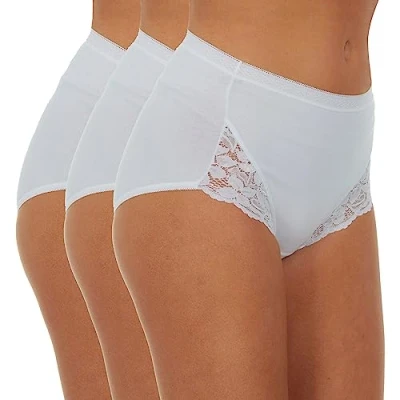 Metzuyan Ladies 6 Pairs Maxi Briefs Cotton Breathable Regular Underwear Lace Leg White Size 18