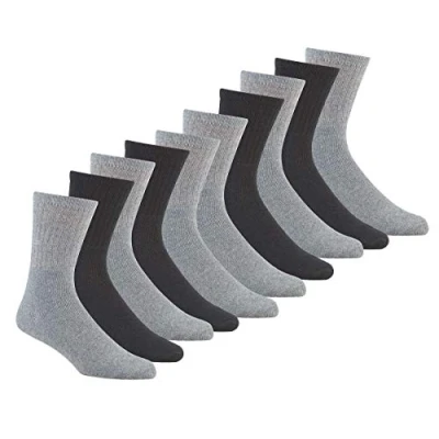 METZUYAN Mens 10 Pairs Sports Socks Cotton Rich Plain Black White Grey Size 6 11