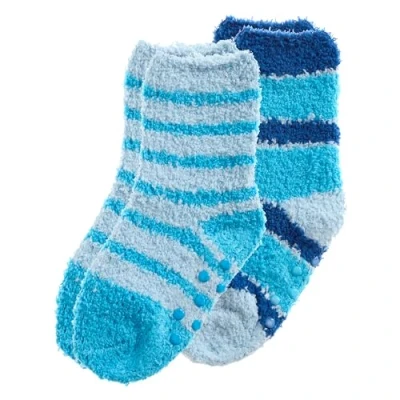 Metzuyan WS AW23 2 Pairs Baby Boys Fluffy Slipper Socks with Non Slip Grippers Anti Skid Cosy Warm Winter Light Blue 0