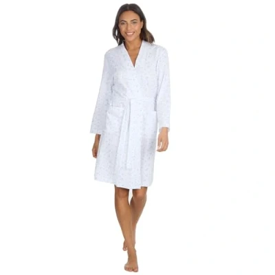 Metzuyan WS SS24 Womens Lightweight Kimono Robe 100% Cotton Summer Dressing Gown Knee Length Bathrobe Blue Floral Large