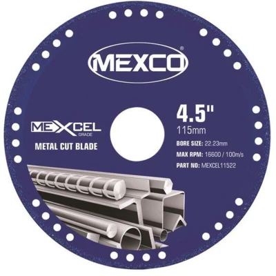 General description The MEXCO XCEL Grade Metal Cut Diamond Blade 115 x 22mm provides superior cutting precision. Its perforated steel core design reduces heat build-up and ensures quick cooling, making it perfect for intensive use. This diamond blade offers an alternative to carborundum abrasive wheels, lasting over 40 times longer than a normal abrasive wheel, which results in less downtime for changing wheels and a constant cutting depth. Other information We do not recommend using this blade to cut Aluminium.