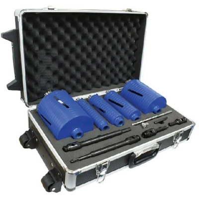 The MEXCO Slotted Dry Core Drill, XCEL Grade. Laser welded, castellated segments allow for a faster and accurate drilling experience due to the high diamond grit concentration and rooftop segments. MEXCO dry core drills should be used in conjunction with a minimum 850W+ drill motor fitted with a slipping clutch. Suitable for dry cutting. The MEXCO Slotted Dry Core Drill XCEL Grade 11 Piece Kit comes in a handy case. Contains: 5 x Slotted Dry Core Drills: 38, 52, 65, 117, 127mm 2 x Hex Adaptors: 80, 250mm 2 x SDS Adaptors: 80, 250mm 1 x A-Taper Pilot Drill 10 x 175mm 1 x Drift Key