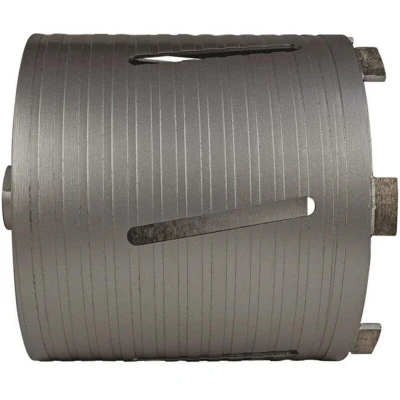 General description MEXCO Slotted Dry Core Drill X90 Grade 162mm is designed for fast drilling speeds and excellent performance in masonry building materials, thanks to its high-quality diamond segments and welded barrels. It is suitable for dry cutting applications. Technical specifications Diameter: 162mm Recommended drill motor power: minimum 850W Usage Use in conjunction with a drill motor fitted with a slipping clutch for optimal performance.