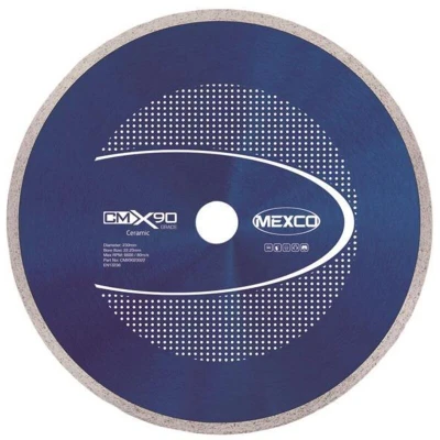 General description The MEXCO X90 Grade Ceramic Materials Diamond Blade is specifically designed for cutting ceramic tiles quickly and cleanly. Its continuous rim segment ensures a smooth and precise cut, making it ideal for both wall and floor tiling projects. With a high diamond concentration, this blade exposes a large amount of diamond grit at all times, resulting in fast, accurate, and clean cuts. Technical specifications Diameter: 230 mm Arbor size: 22 mm Usage This diamond blade is perfect for cutting ceramic tiles, providing an excellent finish without chipping or inaccuracies. It is designed for general use, ensuring a low wear rate while delivering great value for money.