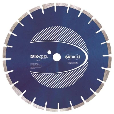 General description The MEXCO Asphalt XCEL Grade Diamond Blade is a superior diamond cutting blade designed for contractors and builders who require a high-quality cut on a regular basis. It excels in fast stock removal and delivers excellent performance in cutting abrasive materials such as asphalt, green concrete, and cement screed. Technical specifications Diameter: 350 mm Arbor size: 25.4 mm