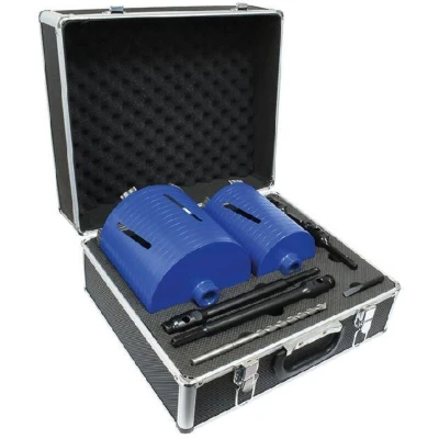 The MEXCO Slotted Dry Core Drill, XCEL Grade. Laser welded, castellated segments allow for a faster and accurate drilling experience due to the high diamond grit concentration and rooftop segments. MEXCO dry core drills should be used in conjunction with a minimum 850W+ drill motor fitted with a slipping clutch. Suitable for dry cutting. The MEXCO Slotted Dry Core Drill XCEL Grade 8 Piece Kit comes in a handy case. Contains: 2 x Slotted Dry Core Drills: 107, 152mm 2 x Hex Adaptors: 80, 250mm 2 x SDS Adaptors: 80, 250mm 1 x A-Taper Pilot Drill 10 x 175mm 1 x Drift Key