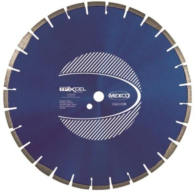 General description This MEXCO XCEL Grade Tri-Purpose Diamond Blade is designed for superior cutting performance on a variety of building and construction materials, including abrasive, non-abrasive, and asphalt. It eliminates the hassle of changing diamond blades for different materials, making it a versatile choice for professionals and DIY enthusiasts alike. Technical specifications Diameter: 400 mm Arbor size: 20 mm Segment protection: TCT undercutting protection Cooling: Ventilation holes in the steel center Segment welding: Laser welded Usage This blade is suitable for cutting a wide range of materials, including: Reinforced Concrete Concrete Block Asphalt Ductile Iron Granite Engineering Brick Limestone Breeze Blocks