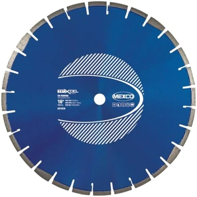 ManoManoGeneral description This MEXCO XCEL Grade Tri-Purpose Diamond Blade is designed for superior cutting performance on a variety of building and construction materials, including abrasive, non-abrasive, and asphalt. It eliminates the hassle of changing diamond blades for different materials, making it a versatile choice for professionals and DIY enthusiasts alike. Technical specifications Diameter: 400 mm Arbor size: 20 mm Segment protection: TCT undercutting protection Cooling: Ventilation holes in the steel center Segment welding: Laser welded Usage This blade is suitable for cutting a wide range of materials, including: Reinforced Concrete Concrete Block Asphalt Ductile Iron Granite Engineering Brick Limestone Breeze Blocks