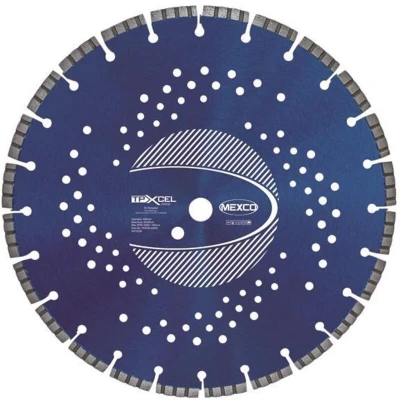 General description This MEXCO XCEL Grade Tri-Purpose Diamond Blade is engineered for superior cutting performance on a variety of building and construction materials. It is designed to eliminate the need for changing diamond blades when switching between different materials, making it a versatile choice for professionals and DIY enthusiasts alike. Technical specifications Blade diameter: 350 mm Arbor size: 20 mm Manufacturing technique: Laser welded segments Features: TCT undercutting protection, ventilation holes for cooling Usage This blade is suitable for cutting a wide range of materials, including: Reinforced Concrete Concrete Block Asphalt Ductile Iron Granite Engineering Brick Limestone Breeze Blocks