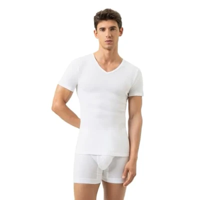 Mey Noblesse V-neck T-shirt White Mey Noblesse V-neck T-shirt White in de kleur White met een pasvorm Slim-Fit is gemaakt van Organic Cotton en Cotton met een Plain dessin en Short sleeves.