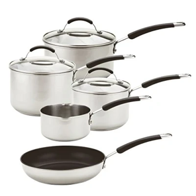 STAINLESS STEEL PAN SET INCLUDES: 14 cm Milk Pan, 16 cm, 18 cm and 20 cm Saucepan Set with lids and tall profile, and a 24 cm frying pan with triple layer non stick coating. All of them come with Meyer's 10 years guarantee INDUCTION SUITABLE - This cookware set with lids is suitable for all hobs; Including induction, gas, halogen, radiant ring, solid plate and ceramic; the perfect addition to any kitchen HIGH PERFORMANCE - This induction hob pan set is made of durable stainless steel with stainless steel handles and base ensuring even heat distribution for fast efficient cooking and extra safety TRIPLE LAYER NON STICK - The 24cm frying pan is equipped with durable and efficient triple layer non-stick. This means healthier meals with less or no oil required, and less time cleaning up DISHWASHER AND OVEN SAFE - The comfortable soft grip handles on this stainless steel cookware set are oven safe up to 180°C350°Fgas mark 4. It is also dishwasher safe to save some time cleaning up