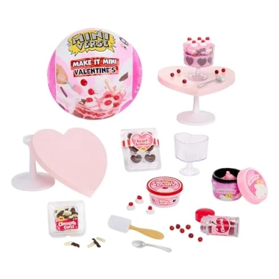 MAKE IT MINI VALENTINES: Celebrate the Valentine’s season with Make It Mini Valentines; a Valentine’s themed DIY collectable series for crafting and creating sweet mini moments UNBOX IT: Each surprise ball comes with realistic Valentine’s inspired “ingredients” and accessories; unwrap a dessert, decor piece or another themed mini MAKE IT: Use the collector’s guide and follow the “recipe” card to assemble your Valentine’s creation; mix it up with a #MiniverseRemix for extra creativity SET IT: Once you have finished creating your Valentine’s mini, place it under sunlight or use any UV light until the resin has hardened; once set, it is ready for display DISPLAY IT: Show your mini creation on the included heart-shaped table; a themed display piece for presenting your Valentine’s mini RARE MINI TO FIND: Keep a lookout for the Ultra Rare Engagement Ring mini; a fun collectable hunt within the Valentine’s series DISCLAIMER: All ingredients are NOT edible and include resin play; not suitable for children under 8 years of age, Manufacturer: MGA Entertainment