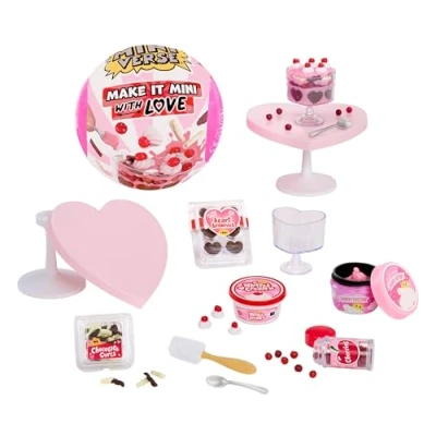 MAKE IT MINI WITH LOVE: Celebrate the season with Make It Mini With Love; a Valentine’s themed DIY collectable series for crafting tiny creations UNBOX IT: Each ball includes realistic ingredients and accessories; unwrap a dessert, decor piece, or another love-themed mini MAKE IT: Check the collector’s guide to see which mini you have; follow the “recipe” card to assemble your creation or craft a #MiniverseRemix SET IT: After completing your mini, place it under sunlight or use a UV light until the resin has hardened; once set, it is ready for display DISPLAY IT: Show your mini on the included heart-shaped table; a themed display piece for presenting your finished creation in style RARE MINI TO FIND: Keep a lookout for the Ultra Rare Engagement Ring mini; a fun collectable hunt within the With Love series DISCLAIMER: All ingredients are NOT edible and include resin play; not suitable for children under 8 years of age, Manufacturer: MGA Entertainment