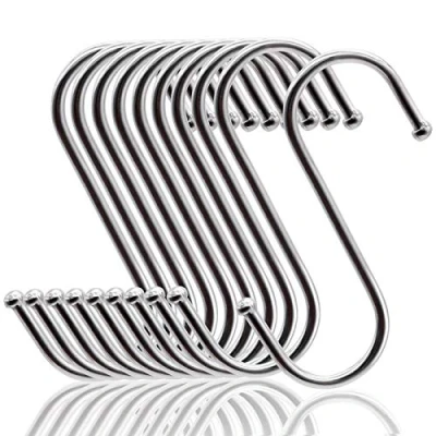 MgcTolBox 20PCS S Shaped Hooks, Premium Stainless Steel Metal Hanging Hooks Multi Function, Heavy Duty Hangers for Kitchen Office Bathroom Bedroom (Silver, Medium)