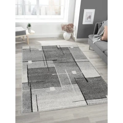 Mia's Mosaix Modern Dense Short Pile Rug for Living Room and Bedroom with Contour Cut, Geometric Patterns, Chequered, in Grey, 160 x 220 cm