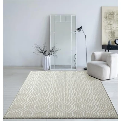 Mia's Teppiche Cielo Modern dense short pile carpet, living room, bedroom, elegant sheen, glossy fibre, high low effect, feather, Creme, 80 x 300 cm