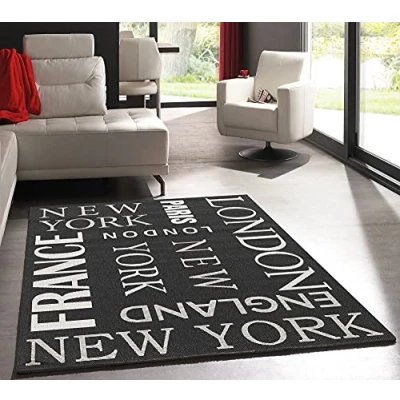 Mia's Teppiche Lara In and Outdoor Rug, Flat Fabric, 80x200 cm, Black