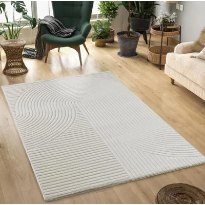 Mia's Theo Rugs, Modern Short Pile with High/Low Effect, 3D High Density, Soft, Panglao Design, Cream, 140 x 200 cm