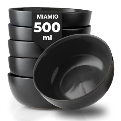 MIAMIO 6 x 600 ml Stoneware Bowl Set Outside Black Inside Colourful (Black)
