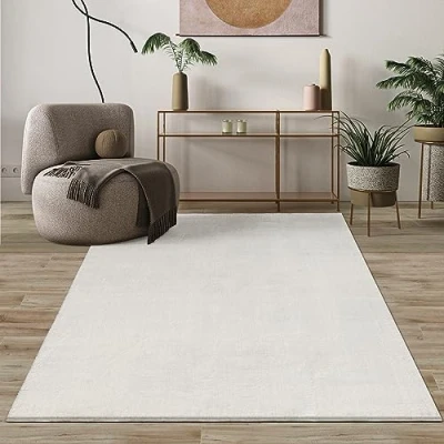 Mias Teppiche Comfort Modern Fluffy Short Pile Carpet, Anti Slip Backing, Washable up to 30 Degrees, Super Soft, Faux Fur Look, Creme, 60 x 110 cm